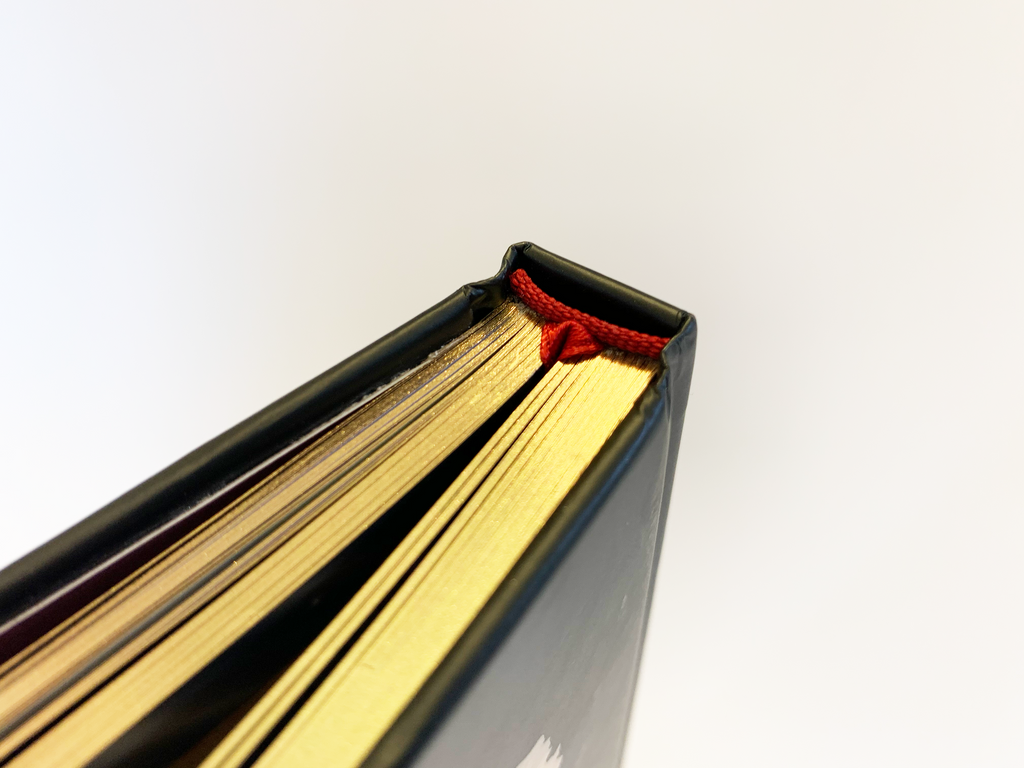 Binding style: Section sewn, Gold gilding on 3 sides, head and tail bands, red ribbon